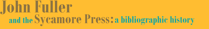 The Sycamore Press ceased operations in 1992, but it remains an excellent example of the unique qualities associated with the small press movement in England. In addition to a full descriptive bibliography, the book includes an interview with John Fuller and numerous personal reflections by Sycamore Press authors about John Fuller, the press, and the works it produced. Contributors include: